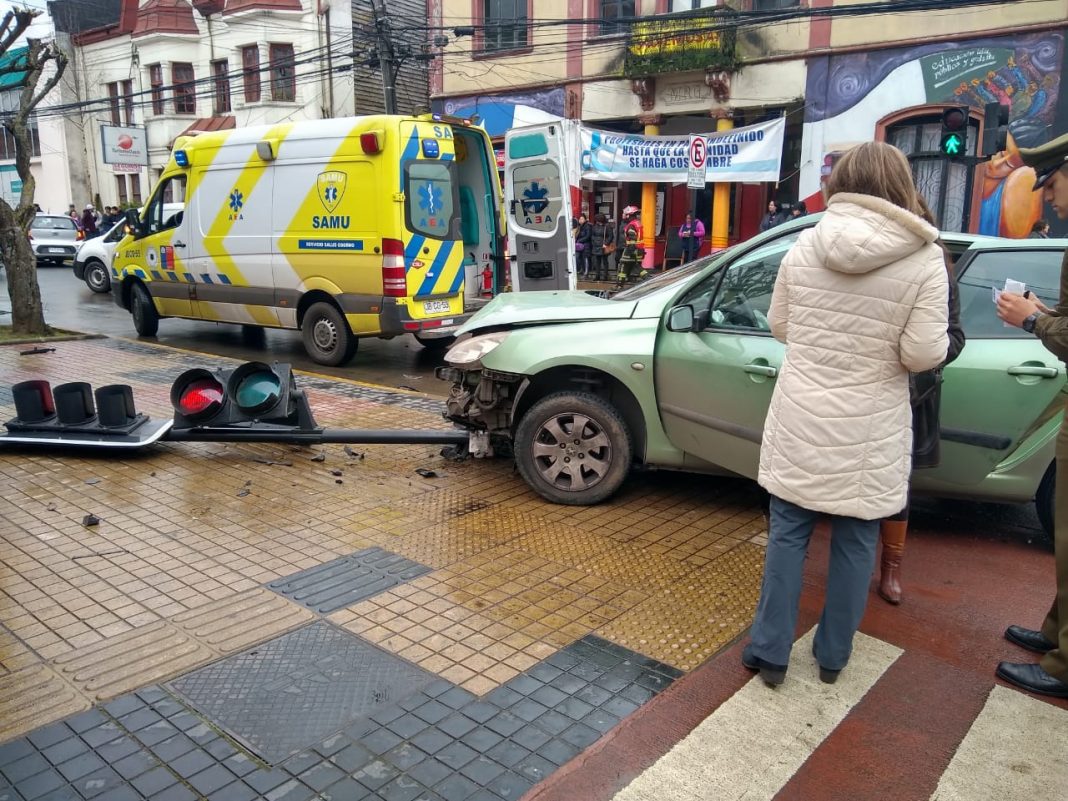 El hecho se evidenció en la intersección de Juan Mackenna con calle Bernardo O’Higgins, en donde aparentemente el conductor que iba por la Avenida de norte a sur no habría respetado el semáforo del lugar lo que concluyó en el choque, lo que incitó un impacto con la señalética.