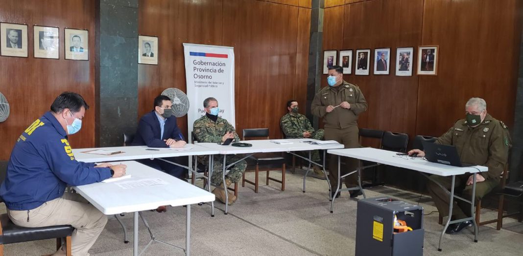 La reunión denominada Comité Policial Provincial, encabezado por el Gobernador de Osorno, Mario Bello y los prefectos de Carabineros, Coronel Gustavo Saavedra, de la Policía de Investigaciones, Christian Muñoz y el Comandante del Destacamento de Montaña N°9 Arauco, Nelson Cabezas, jefe de plaza en la provincia, permitió abordar lineamientos y coordinaciones enfocados en la seguridad.