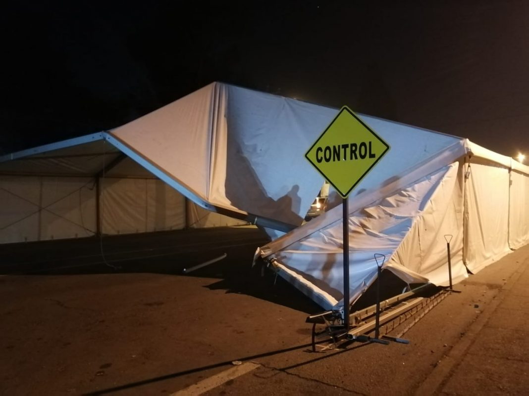 Producto de un accidente de tránsito, en que un camión de gran tonelaje impactara con la carpa dispuesta para protección de condiciones climáticas de funcionarios de orden y seguridad, como de salud; generando daños en la estructura que además imposibilita el tránsito, se debió desviar a todos los vehículos hasta el control de avenida René Soriano, el que, a esta hora de la noche se encuentra con alta congestión.