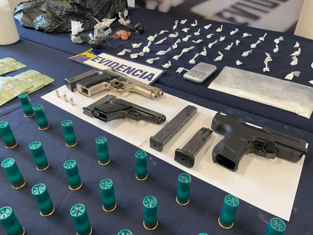Según detalló el subprefecto Mauricio Jiménez, se incautaron 370,79 gramos de cannabis sativa, 95,50 gramos de clorhidrato de cocaína y 865,27 gramos de cafeína en el sector poniente de la ciudad. Junto con ello se encontraron tres armas a fogueo, 50 cartuchos de diferentes calibres y dinero en efectivo.