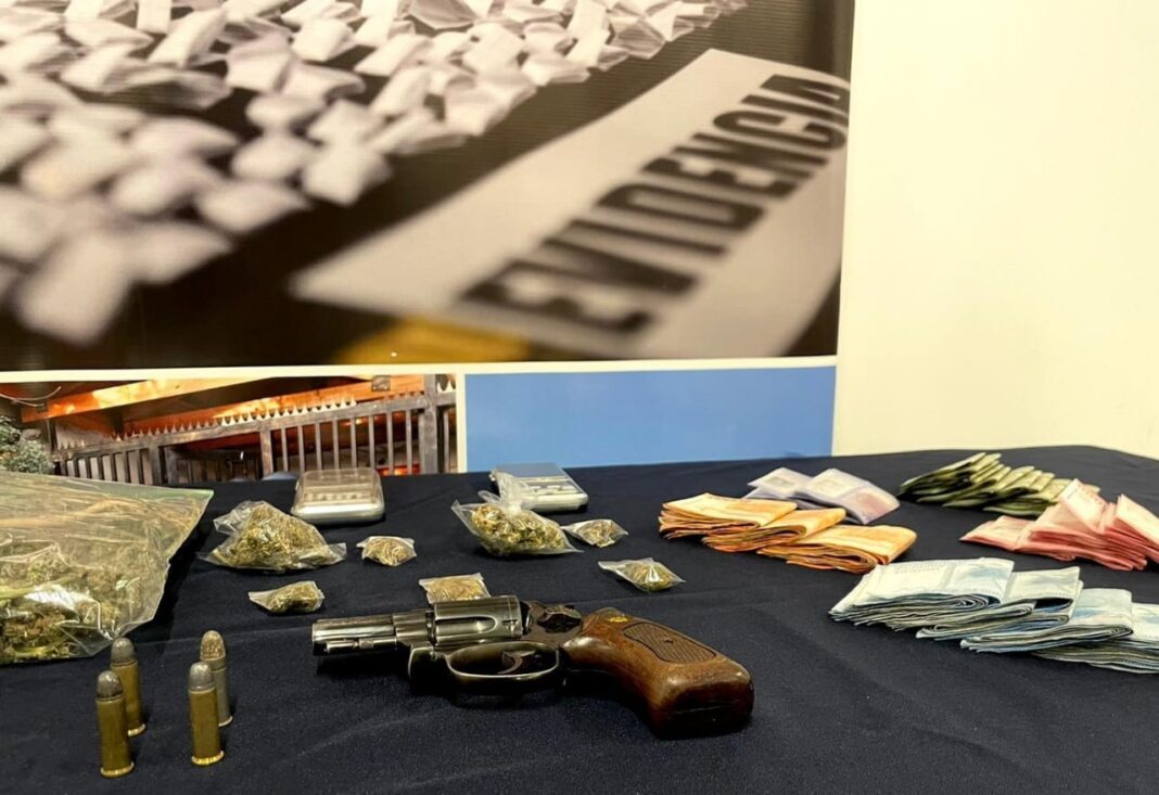 Junto con ello se encontró un arma de fuego tipo revólver, ocho cartuchos de diferentes calibres y más de 2 millones 800 mil pesos en efectivo.