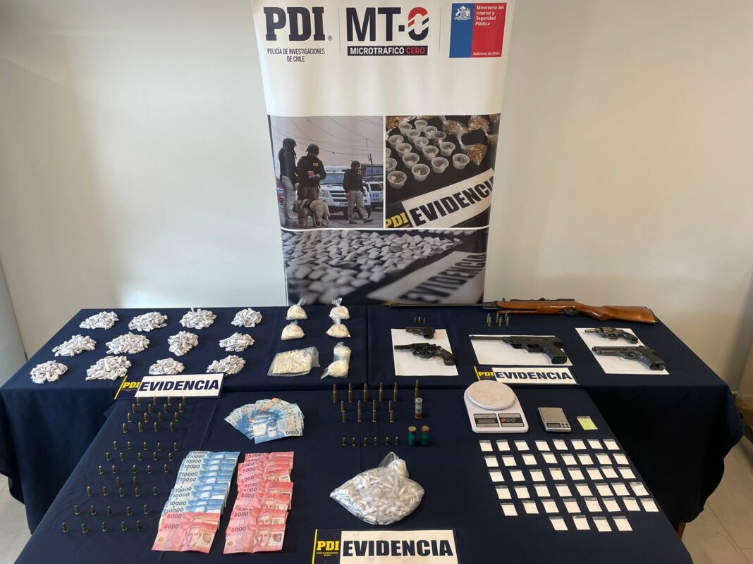 Detectives de la agrupación Microtráfico Cero (MT0) dependiente de la Brigada Antinarcóticos y Contra el Crimen Organizado de Osorno, detuvieron a una banda criminal compuesta por 4 mujeres y 1 hombre por delitos de infracción a la Ley de Drogas y Ley de Control de Armas.