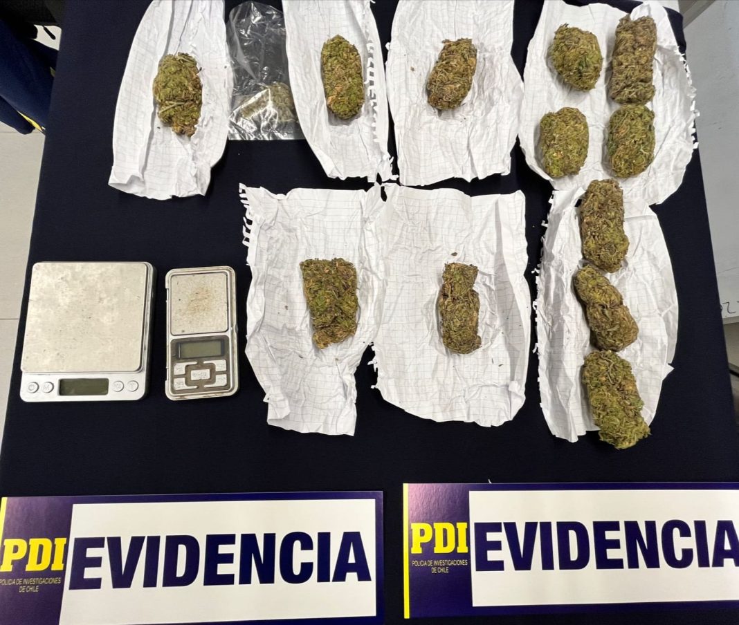 Mediante las diligencias investigativas desarrolladas por los detectives y recolección de medios de prueba, ayer viernes se allanó su vivienda en la Población Quinto Centenario, instancia donde se encontraron 163,13 gramos de cannabis sativa, además de dos balanzas digitales y otros elementos asociados al delito.