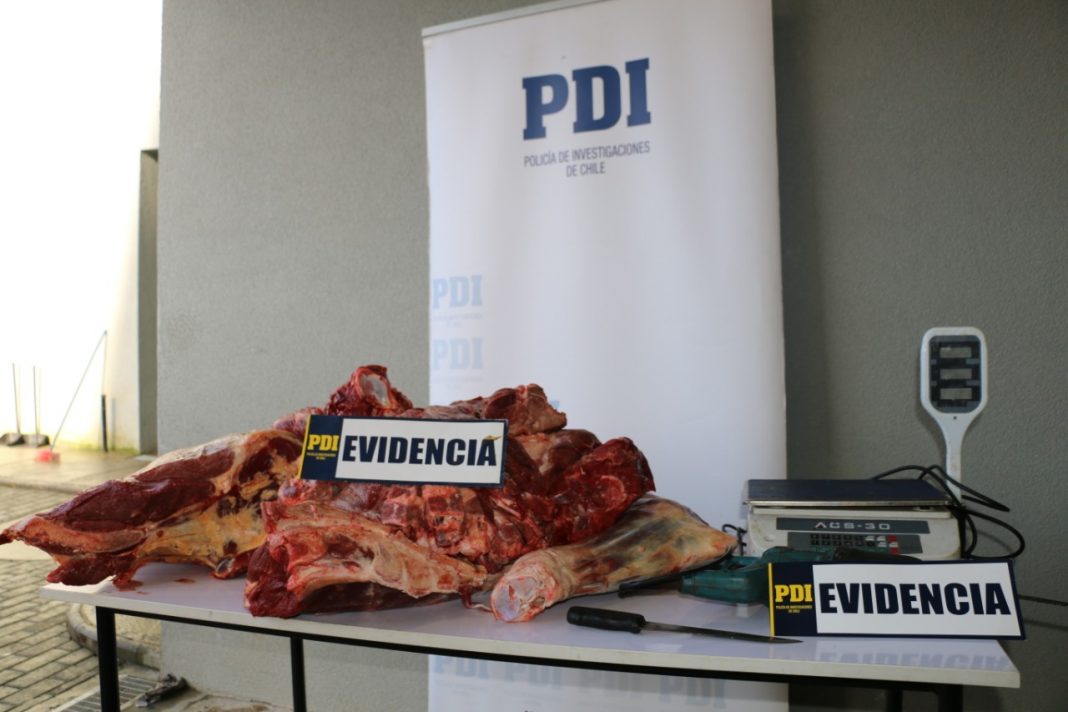 Tres personas adultas, fueron detenidas por los delitos de abigeato y matadero clandestino flagrante la madrugada de este lunes por parte de los Detectives de la Brigada de Investigación Criminal en el sector de Circunvalación Sur de Valdivia. De acuerdo a la investigación realizada por los Oficiales de la PDI, los imputados, luego de faenar un bovino en una propiedad de un sector rural de esta provincia, el cual no estaba habilitado para el faenamiento de vacunos, proceden a transportar los trozos de carne a Valdivia para luego ser vendidos a particulares en forma irregular poniendo en riesgo la salud de las personas, ya que no se efectuaron controles sanitarios a la carne, como tampoco pudieron acreditar la procedencia del animal faenado ni su propiedad. Lo incautado por la PDI corresponde a 200 kilos de carne bovina, cuchillos, sierra eléctrica y pesa digital. Los detenidos, dos hombres, uno de ellos con antecedentes de una detención anterior por el delito de Robo en Bienes Nacionales de Uso Público, y una mujer, fueron puestos a disposición del Juzgado de Garantía de Valdivia. Recordemos que la PDI mantiene un equipo especializado y con dedicación permanente para investigar el Abigeato en nuestra región; por lo cual, se hace un llamado permanente a la comunidad para la entrega de antecedentes y denuncias sobre este delito, disponiendo para esto del teléfono de emergencia 134.
