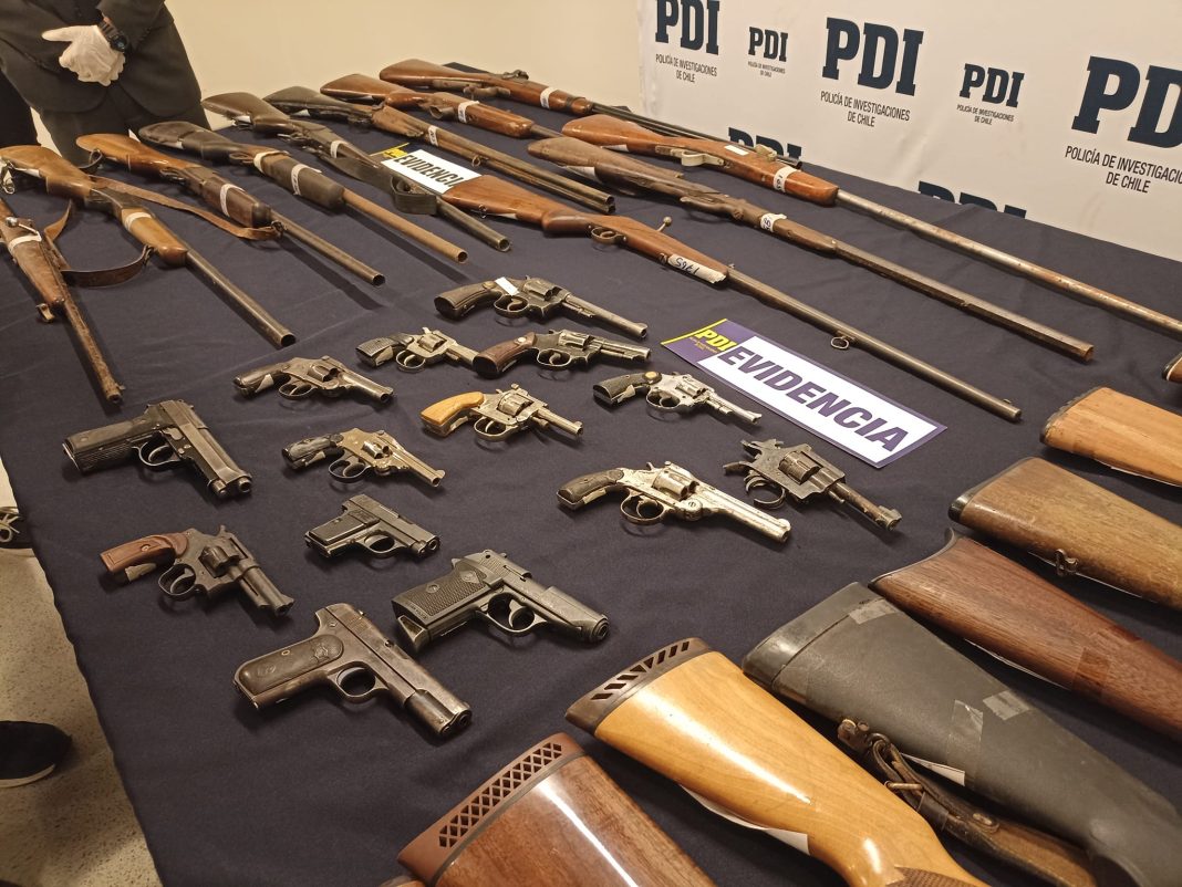 La Policía de Investigaciones realizó la incautación de 34 armas en la Provincia de Osorno, en lo que es el tercer operativo que realizan con la finalidad de recuperar todas las armas que no se encuentran regularizadas.El jefe del Sistema de Análisis Criminal de la región de Los Lagos (Sacfi), Fiscal Rodrigo Oyarzún, indicó que se trabajó en la búsqueda de información con respecto a personas fallecidas que mantenían armas de fuego inscritas a su nombre, pero que en la actualidad estaban irregulares. A su vez, expresó que la finalidad de recuperar estas armas de fuego que no han sido regularizadas permite evitar el uso de las mismas para el comercio ilegal.Por su parte, el Jefe regional de la PDI de los Lagos, Prefecto Cristián Muñoz, destacó que las armas fueron remitidas a los laboratorios de criminalística en Puerto Montt para su análisis balístico a modo de determinar si se encuentran operativas.Finalmente, la Fiscal de Foco a nivel Provincial, Leyla Chaín, aclaró que las personas que entreguen estas armas que no han sido regularizadas no arriesga un tipo de penalidad por lo que reiteró el llamado a las personas que tengan estas a que acudan a las autoridades y procedan a la entrega de dicho elemento.En total fueron incautadas 1 carabina, 3 rifles, 16 escopetas, 11 revólveres y 3 pistolas en el operativo “Reliquias de fuego II”.
