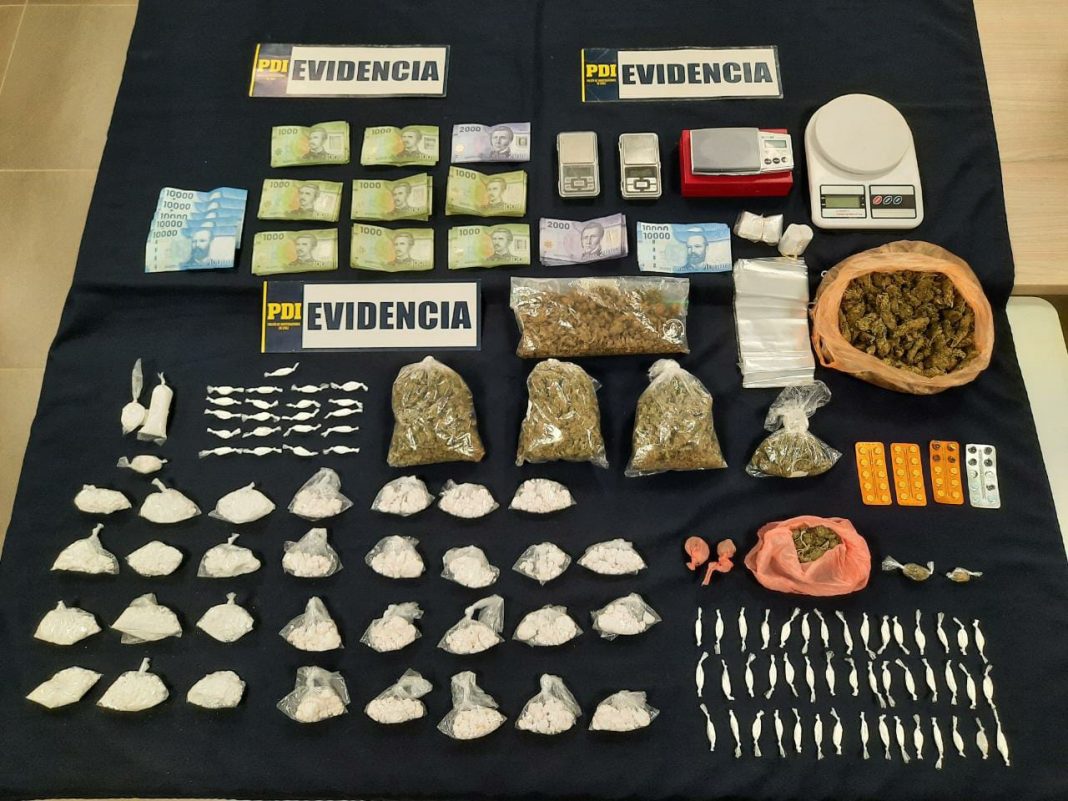 Con esta información, el fiscal Gonzalo Valderas, gestionó la entrada y registro a varios domicilios en Lanco, logrando incautar 616 gramos de Cocaína Base, 613 gramos de Cannabis tipo Cripy, 71 gramos de Clorhidrato de Cocaína, 26 comprimidos de Clonazepam y 3 comprimidos de Diazepam, cuatro balanzas digitales y 176 mil pesos en dinero en efectivo. Además, un vehículo tipo camioneta marca Ssangyong.