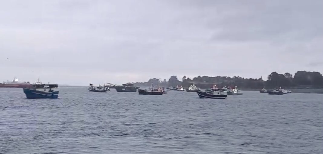 La protesta, que mantuvo cortado el tráfico de embarcaciones mayores en el canal de Chacao y que se extendió hasta cerca del mediodía, fue una medida de rechazo ante la futura presencia de la industria pesquera en la zona.