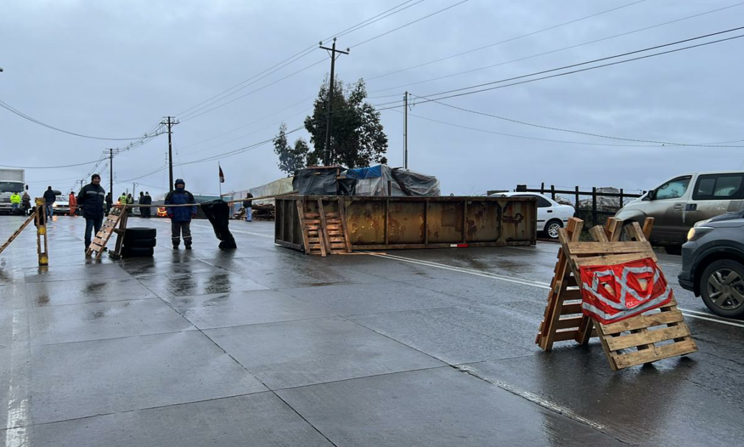 Pescadores artesanales mantienen tomada carretera en km 2 comuna de Quellón, Las barricadas están emplazadas en ruta 5 km 2, sector Santa Rosa, en Quellón, y solo pueden transitar vecinos con hora médica en otra comuna.