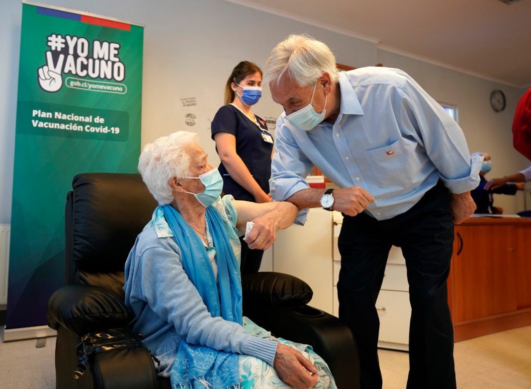 Este miércoles el Presidente Sebastián Piñera, dio inicio al proceso de vacunación masiva contra el coronavirus junto a la primera adulta mayor que recibió la dosis del laboratorio Sinovac, en Futrono.