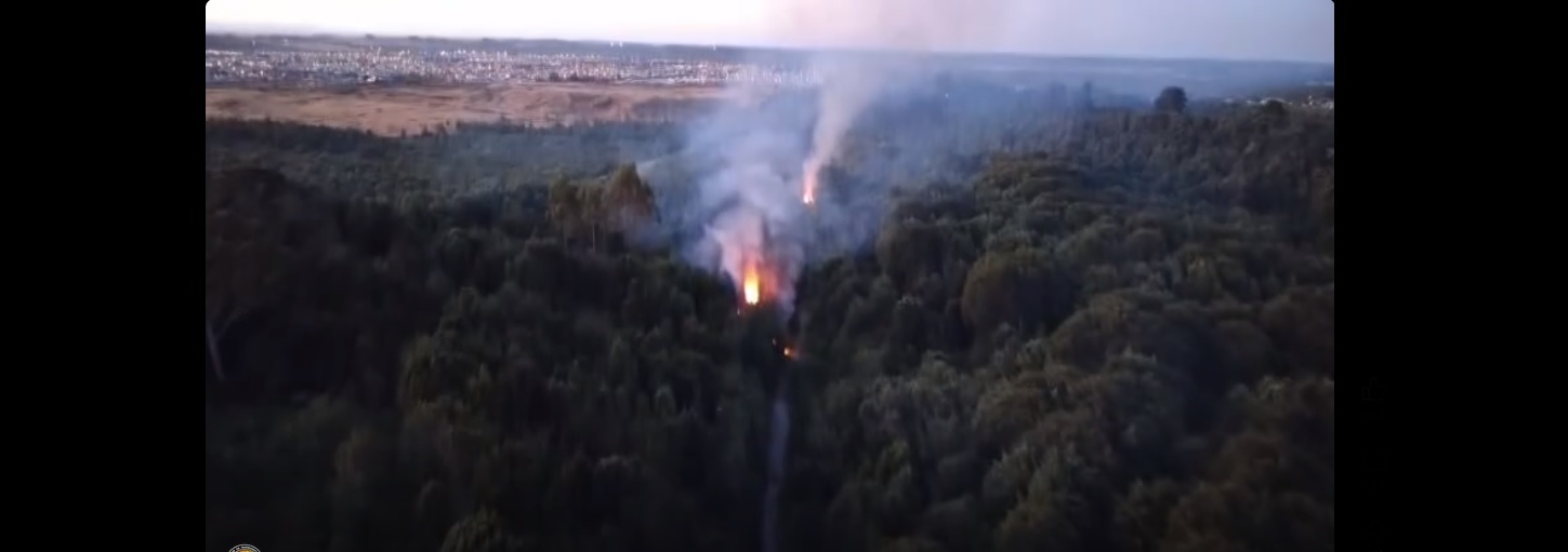 Una inspección en terreno y a través de drones confirmó que el inicio del fuego fue intencional y en cinco focos simultáneos al interior del Parque Vivero Alerce, en la capital regional.