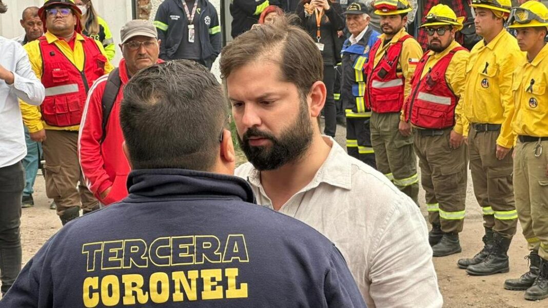 El Presidente de la República, Gabriel Boric, arribó a Coronel, en la Región del Biobío, en el marco de su visita a las zonas afectadas por los incendios forestales.