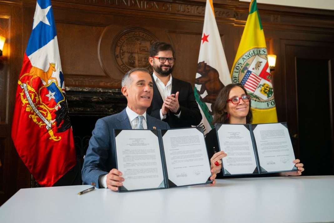 En el marco de su visita a Estados Unidos para participar en la IX Cumbre de las Américas, el presidente Gabriel Boric se reunió este lunes con el alcalde de Los Ángeles Eric Garcetti, para poder abordar estrategias con el fin de enfrentar la crisis de la sequía.