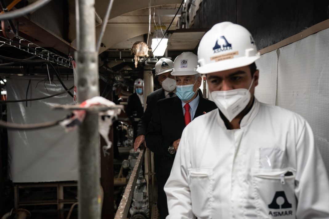 Acompañado por el ministro de Defensa, Baldo Prokurica, y por el comandante en jefe de la Armada, Almirante Juan Andrés de la Maza, el Jefe de Estado participó en el corte de plancha, con lo cual se dará por iniciada la construcción del buque.