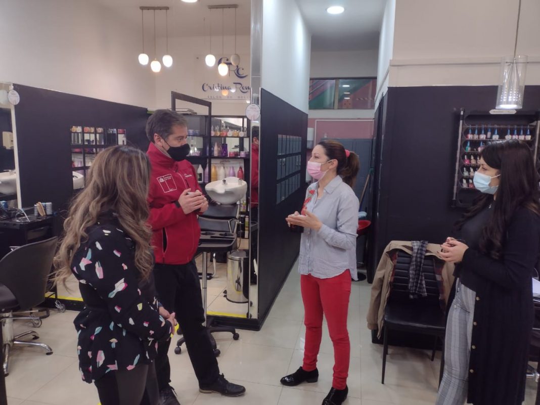 El seremi de Economía, Fomento y Turismo, Francisco Muñoz junto a la presidenta de la asociación gremial “Profesionales de la Belleza X región”, Yesenia Ojeda, profundizaron en la firma de convenio y la implementación de protocolos de manejo y prevención ante el Covid-19, en una gestión realizada por el gremio en conjunto con el Ministerio de Economía, permitiendo a peluquerías, salones de belleza, centros de estética y a fines, de todo Chile, abrir sus puertas en cuarentena y fines de semana.