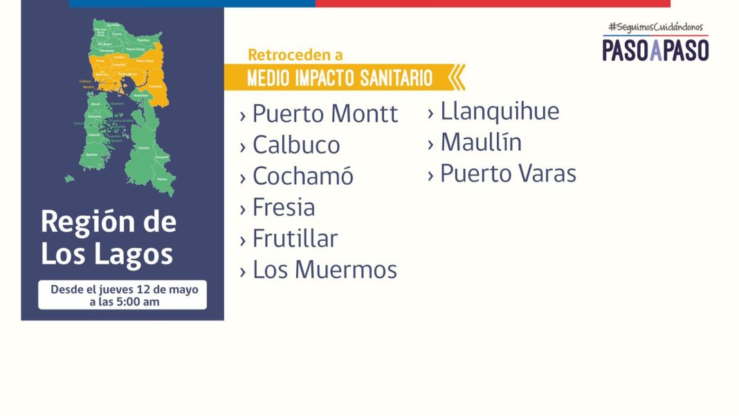 ¿Cuáles son las medidas rigen en fase de medio impacto sanitario?Desde el 12 de mayo a las 05.00 hrs. retroceden a esta fase: #PuertoMontt#Calbuco#Cochamó#Fresia#Frutillar#LosMuermos#Llanquihue#Maullín#PuertoVaras