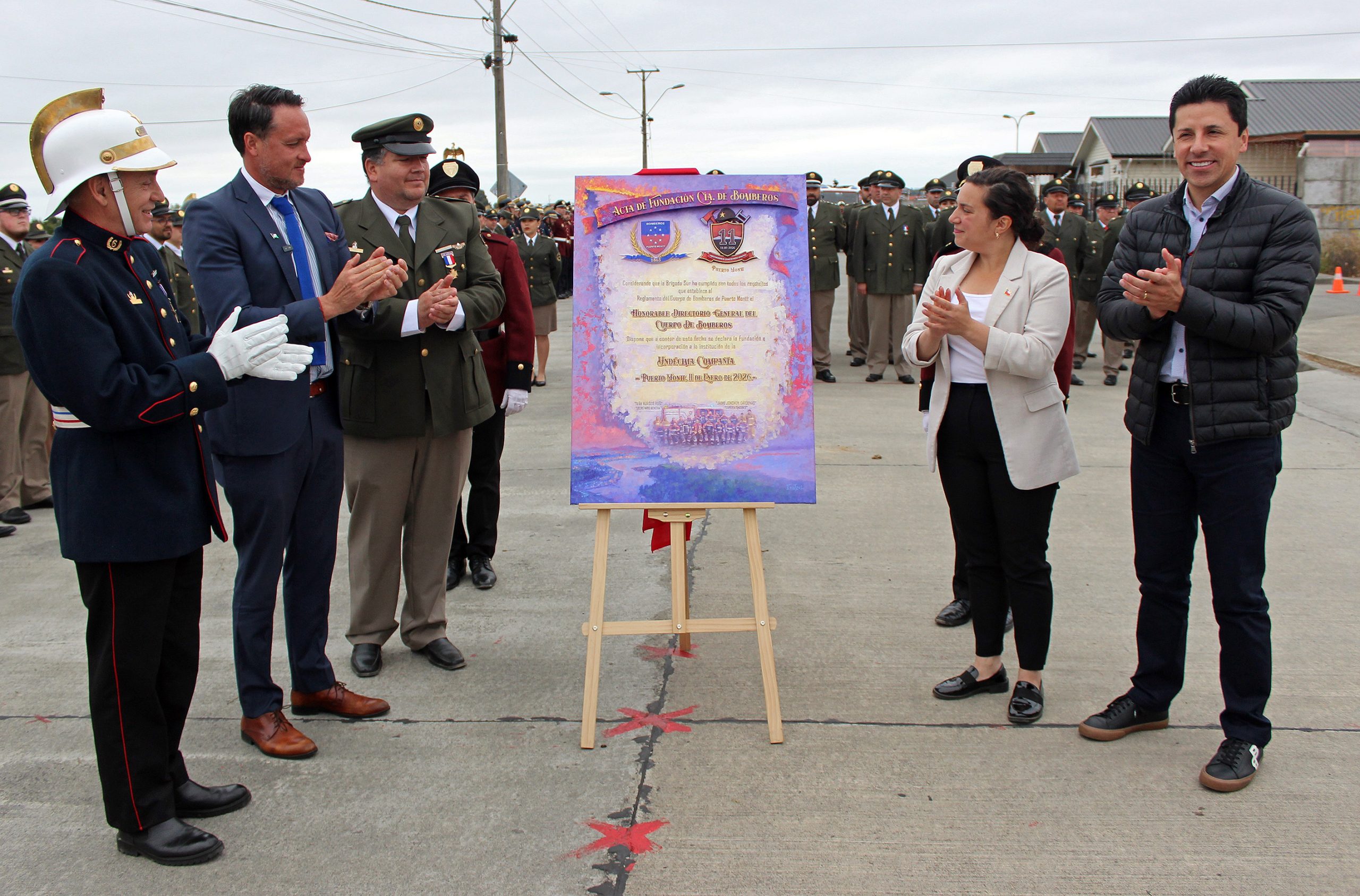 La Séptima Compañía entregó el estandarte que guiará a los nuevos bomberos, mientras que el superintendente Jonshon y la delegada presidencial Muñoz colocaron la medalla fundadora al símbolo patrio de la unidad.