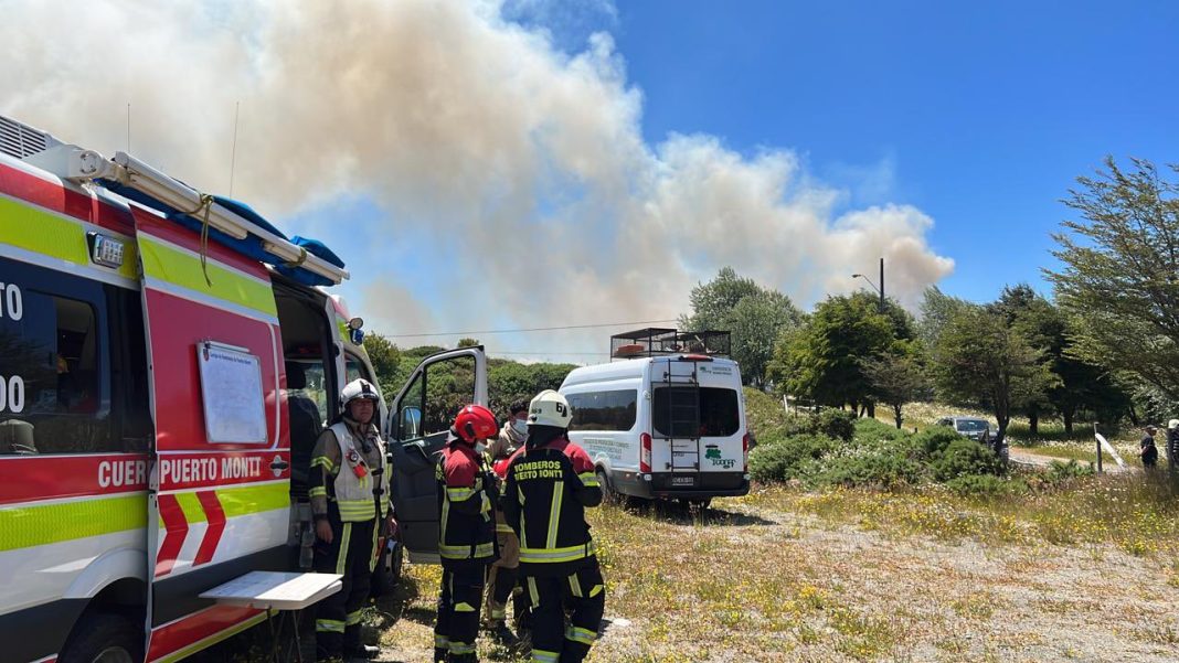 Intenso trabajo han desplegado voluntarios del Cuerpo de Bomberos de Puerto Montt, para atender dos emergencias relacionadas con incendios forestales, en la cuarta terraza de la capital regional.