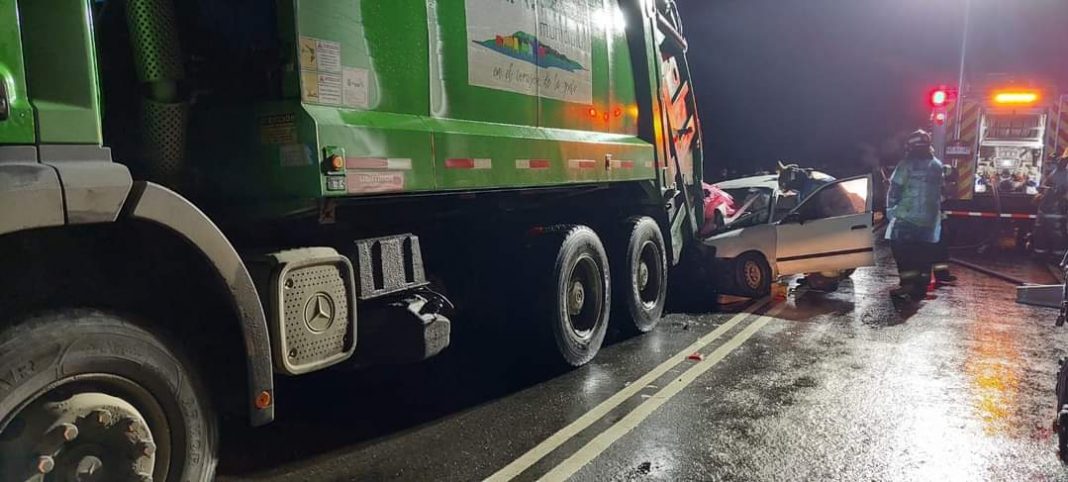 Un trabajador de la basura falleció mientras iba en la parte posterior del camión recolector, luego que un vehículo menor impactactó por alcance a la máquina de carga en Castro.