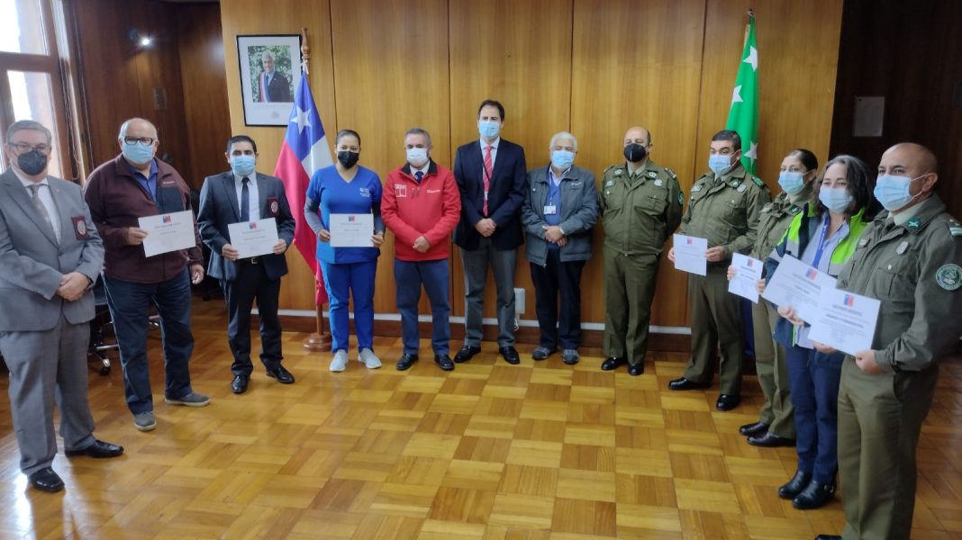 En dependencias de la Delegación Presidencial Regional se dieron cita representantes de Carabineros, el sector salud, policías de investigaciones y dirigentes de la sociedad civil para recibir un reconocimiento por el trabajo desarrollado durante los dos años de la pandemia por covid 19. La simbólica actividad fue encabezada por el seremi de Gobierno Luís Toledo, el seremi de Salud (S) Vicente Faúndez y el director del Servicio de Salud Reloncaví, Jorge Tagle, quienes hicieron entrega de un diploma de reconocimiento ante el trabajo desplegado durante todo este tiempo. Tagle se refirió a este importante trabajo realizado entre la sociedad civil y los funcionarios.Desde el punto de vista de la sociedad civil el dirigente del Consejo Asesor en Salud, Arturo López, agradeció el reconocimiento y comentó que se ha tenido que convivir con el negacionismo del virus.Isabel Soto, Enfermera Coordinadora del SAMU explicó que el trabajo comenzó antes de que llegaran los primeros casos a Chile, viendo la situación en Europa y preparándose para lo peor.A dos años del primer caso de covid en Chile, la región de Los Lagos, de acuerdo al reporte covid 715, posee 173.571 casos confirmados, 1721 fallecidos y 161.625 personas recuperadas, además de más de 2 millones de PCR realizados. Se han levantado un total de 20.607 sumarios sanitarios por covid de los cuales 6.170 ya están finalizados.
