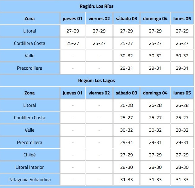 En este contexto, la Dirección Meteorológica de Chile proyectó temperaturas que oscilarán entre los 18°C y los 30°C durante los próximos días en la Región de Los Lagos.