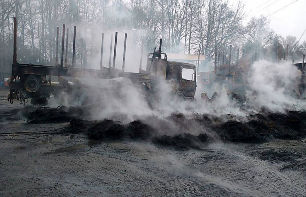 Un nuevo ataque incendiario se registró en horas de la madrugada de este lunes en un galpón ubicado a la altura del kilómetro 790, en dirección norte a sur, en la Ruta 5, en San José de la Mariquina, en la región de Los Ríos, donde 29 camiones pertenecientes a la empresa Sotraser, fueron quemados por al menos siete sujetos.