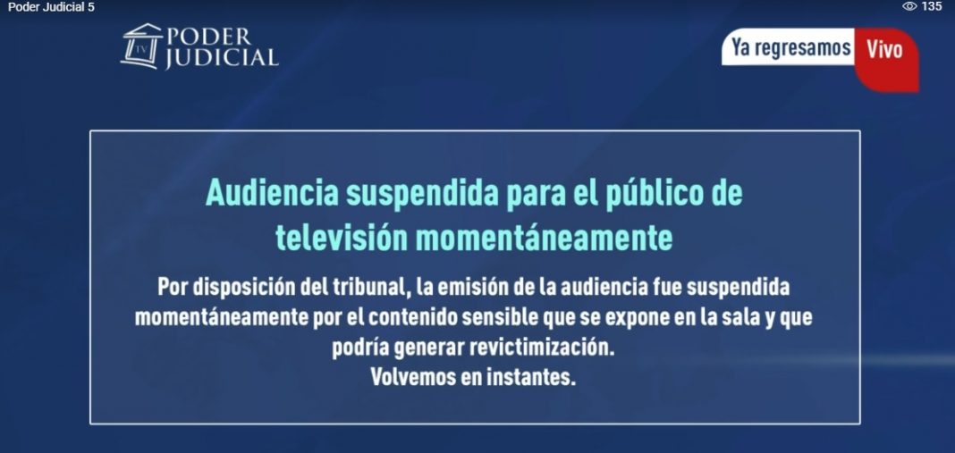 A petición del Ministerio Público y con la aceptación de todos los intervinientes la transmisión por streaming de la audiencia suspendió su emisión de manera pública debido a fin de resguardar los detalles del crimen.