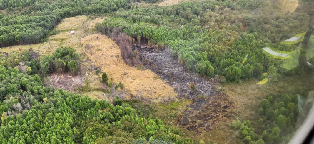 En el lugar, Alejandro Vergues y José Marín verificaron la serie de focos de incendios forestales en la isla Coldita, ubicada al sur de Quellón.