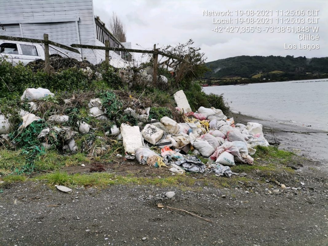 Tras denuncia por contaminación de playa que recibieron funcionarios de Sernapesca de la oficina de Queilen mientras realizaban difusión por la veda de la merluza del sur, concurrieron hasta las playas Terao y Teupa de la comuna de Chonchi para realizar la inspección correspondiente. En el lugar verificaron que la basura provenía de la actividad acuícola.