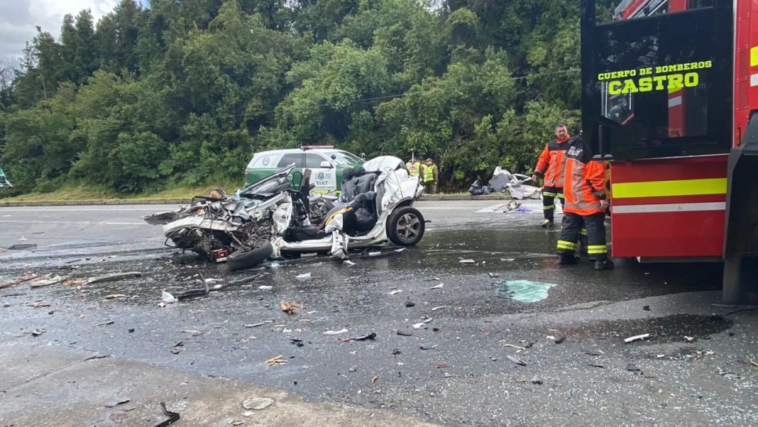 Ambos viajaban en el auto que circulaba por el mencionado sector de la comuna de Castro, cuando cerca de las 12:30 se registró la colisión múltiple, en la que también participaron una camioneta y dos camiones.