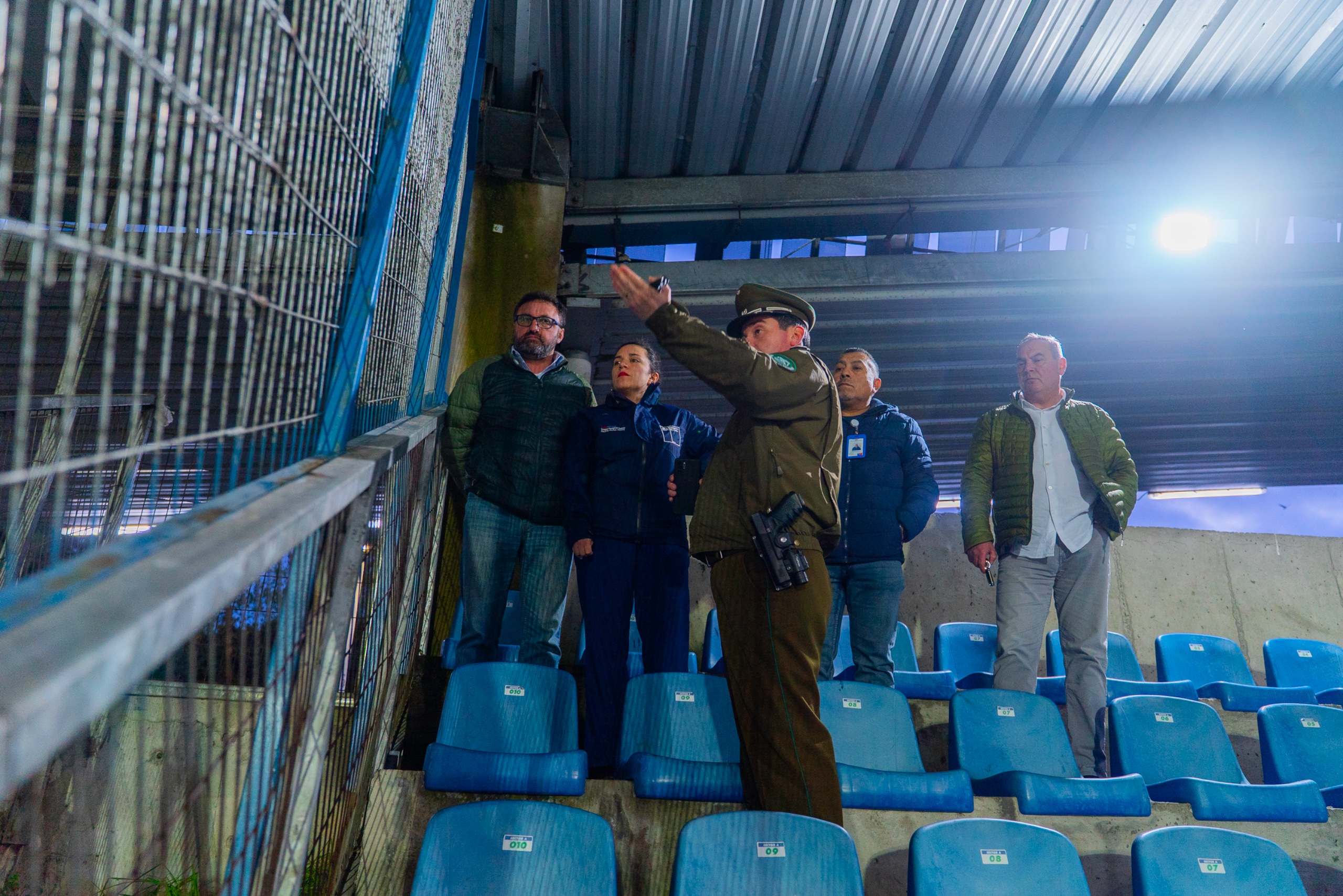 Ad portas del encuentro amistoso entre Deportes Puerto Montt y Colo-Colo, la Delegada Presidencial Regional de Los Lagos, Paulina Muñoz, junto a Carabineros de Chile, equipo de Seremi de Seguridad Pública y representantes de la organización del evento, realizaron una fiscalización preventiva en el Estadio Chinquihue, con el objetivo de garantizar el cumplimiento de las medidas de seguridad para el correcto desarrollo del evento deportivo.