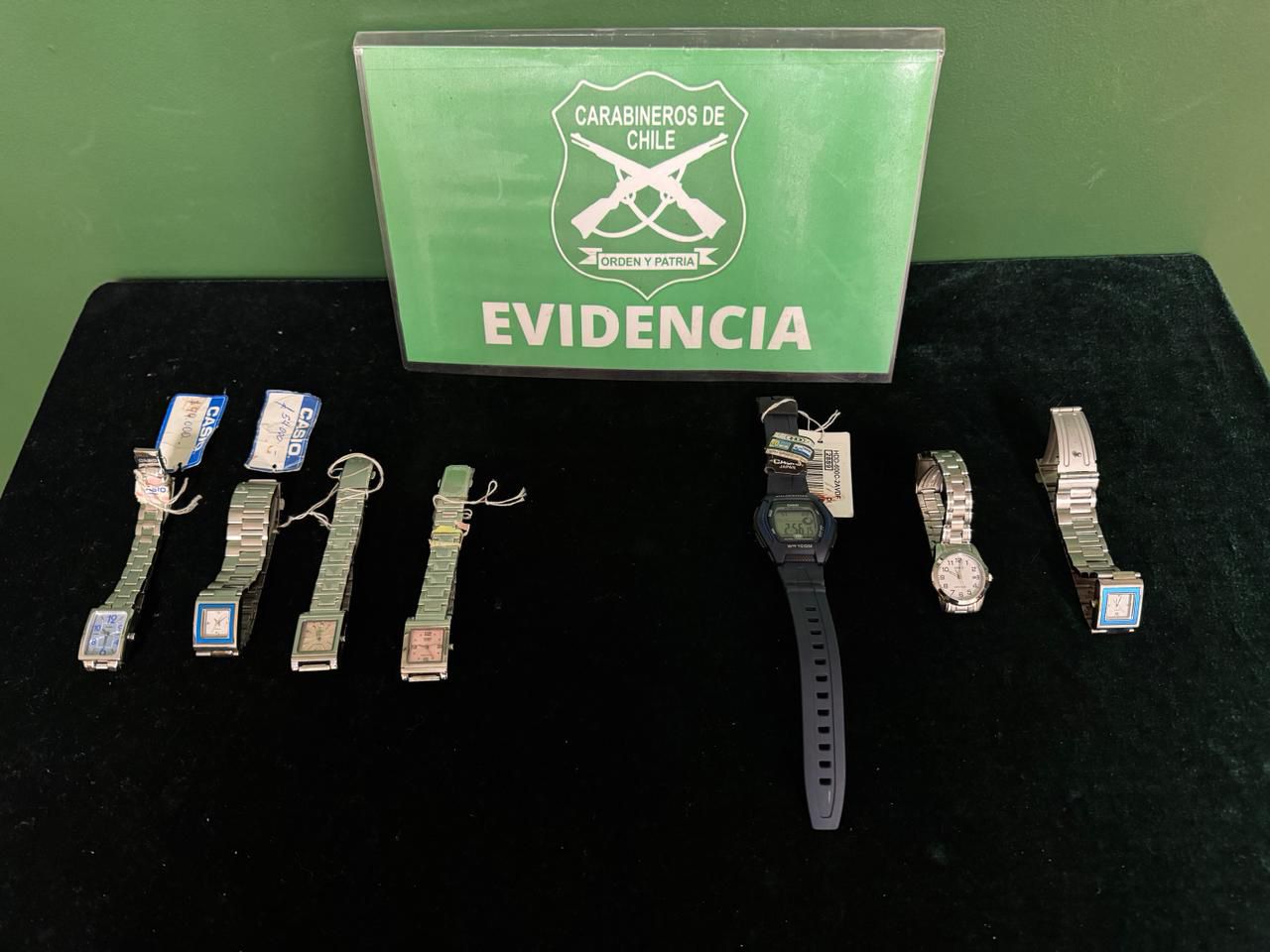 Durante el procedimiento, se incautaron relojes y otras especies sustraídas que los autores mantenían ocultas entre sus vestimentas.