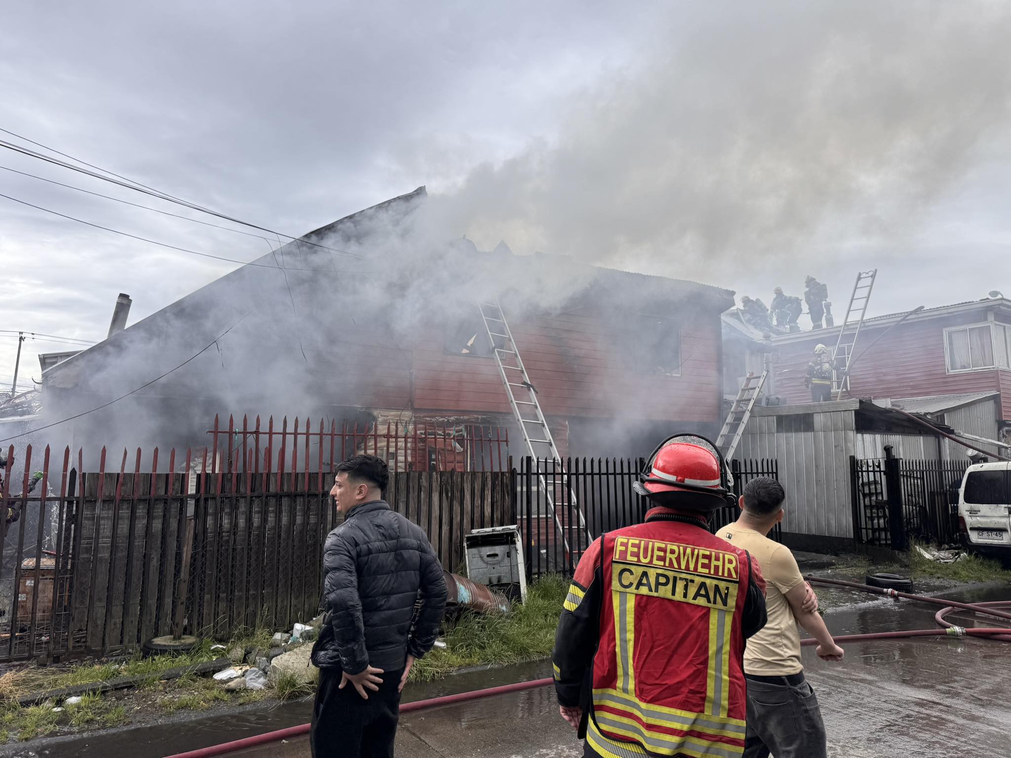 Al Hospital Regional fueron derivados cuatro personas, entre ellas una mujer embarazada y un voluntario de la Novena Compañía del Cuerpo de Bomberos de Puerto Montt tras resultar con lesiones en medio de un incendio que dejó dos casas destruidas, una bodega de una tercera y el techo de una cuarta vivienda.
