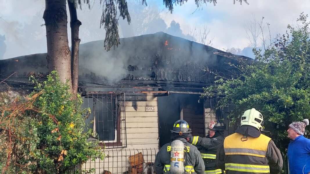 Pasadas las 15 horas de este miércoles, una alarma de incendio motivó la concurrencia de cinco compañías de bomberos de Osorno, a un incendio en el sector de Rahue Bajo. A la altura del 603, por calle Valdivia y a escasos metros de la esquina con Chillán, una casa habitación ardió rápidamente, aunque sin moradores en su interior. Su dueño, Roberto Soto Ñanco, había salido minutos antes a hacer un trámite en las cercanías. Al regresar, vio como su vivienda se consumía por las llamas, siendo el único damnificado. Según informaciones preliminares, la causa del fuego habría sido por una mala ventilación de ducto evacuador de gases de la combustión lenta, detalló el Comandante de Bomberos de Osorno, Felipe Ponce. El control de las llamas tardó poco más de media hora, aunque no hubo peligro de propagación, ya que la vivienda no era pareada. Asistieron además, 50 voluntarios, sin registrarse lesionados. Revisa el video:
