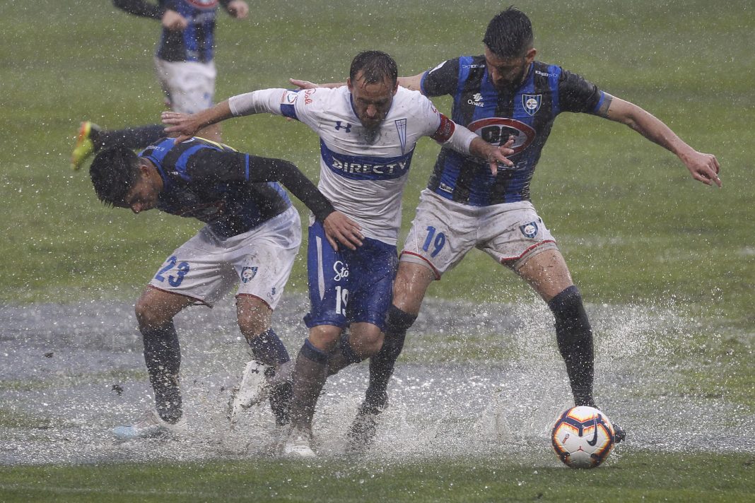 Universidad Católica le ganó a Huachipato, a las adversas condiciones temporales y a cuestionables cobros arbitrales para reafirmarse como líder del Campeonato Nacional tras cumplir con la decimoquinta fecha. La «franja» triunfó por 1-0 en Talcahuano y acumuló un total de 35 puntos, para quedar con un margen de siete unidades sobre el escolta Colo Colo.