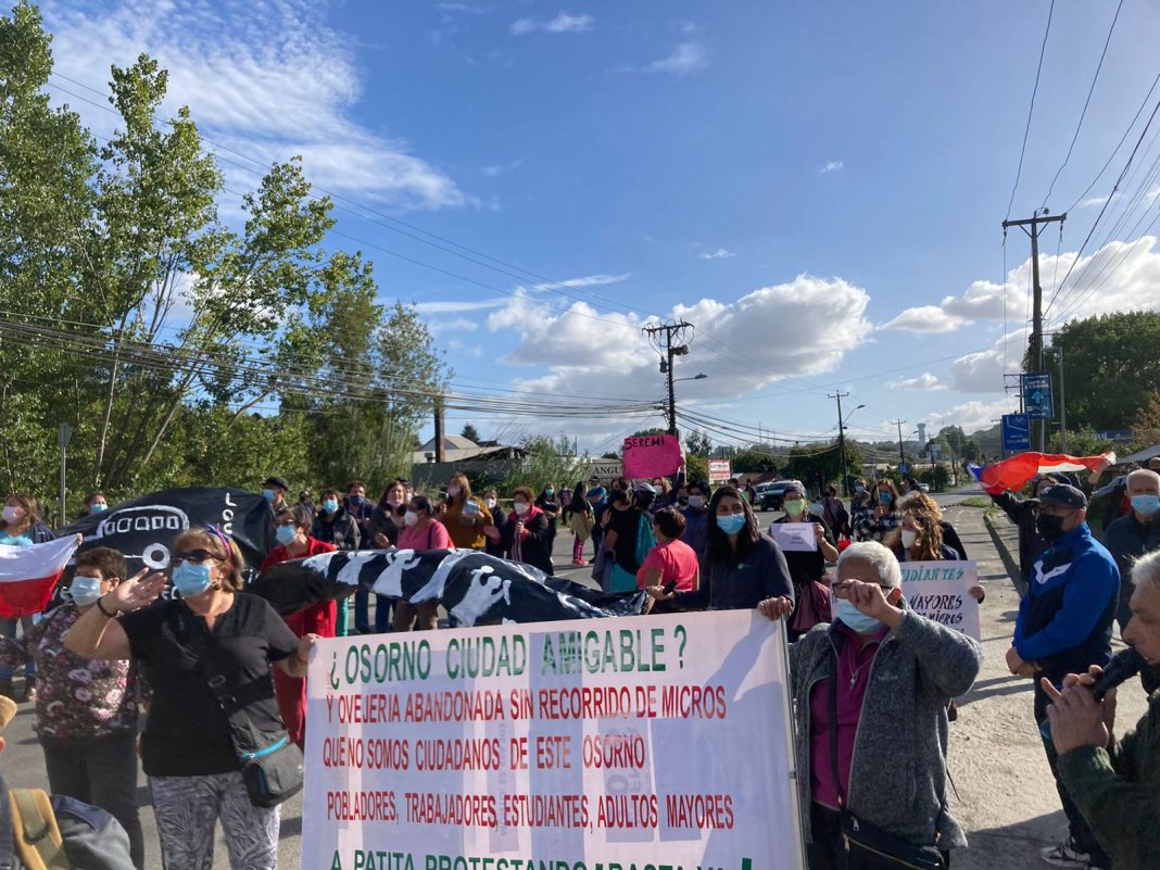 Pocos minutos antes de las 17 horas de este miércoles comenzaron a llegar, en pequeños grupos, diversas dirigentes vecinales de Ovejería, hasta el puente ubicado en la avenida Inés de Suárez, en el límite con el centro de Osorno, tal como habían convocado hace unos días.La idea era manifestarse en contra de la falta de recorridos de micros y la precaria locomoción colectiva que tienen los casi diez mil habitantes del sector, debido al fin de la operación del único recorrido de micros que llegaba hasta Ovejería desde el 1 de marzo pasado, y la poca oferta de colectivos.Unas 80 personas se congregaron en el lugar, primero en las veredas y, luego, en medio de la calle, aunque de manera pacífica y ordenada, con lienzos y carteles, y acompañadas de personal de Carabineros apostado alrededor.El presidente de la Junta de Vecinos El Mirador de Ovejería Alto, Héctor Tapia, adelantó que esperan ser escuchados por las nuevas autoridades de transporte, además de que seguirán protestando mientras no haya solución.Geraldine Valdés, parte de la Junta de Vecinos el Mirador, explicó que es un problema de larga data, que afecta sobre todo a adultos mayores y a estudiantes.Romanet Mansilla, presidenta de la Junta de Vecinos Número 10 Ovejería Bajo, explicó que por ahora están apelando a la solidaridad entre vecinos para trasladarse.Por ahora, el seremi de Transportes, que deja su carajo este viernes, ha indicado que buscan generar una alternativa de licitación de recorrido o trato directo para cubrir el sector que quedó fuera en la primera licitación del Perímetro de Exclusión, siendo asignado transitoriamente a la Línea 3, la que acusó desacuerdos económicos con la autoridad para seguir operando.