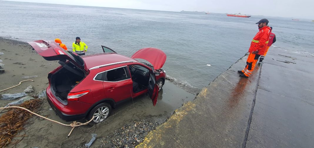 Un vehículo con dos ocupantes en su interior cayó al mar en el sector de Punta Coronel, en la rampa de conectividad entre Pargua y Chiloé