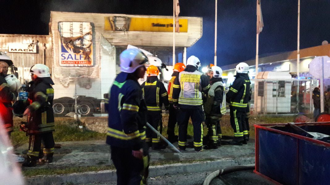 Pérdidas millonarias dejó el incendio que afectó a las instalaciones de la empresa SALFA en la salida sur de Puerto Montt El siniestro, del que emanó una densa columna de humo que pudo ser apreciada desde distintos puntos de la ciudad, se declaró pasadas las nueve de la noche de ayer, movilizando a voluntarios de siete compañías del Cuerpo de Bomberos de Puerto Montt, que fueron reforzadas por carros aljibes de los cuerpos de bomberos de Puerto Varas y Llanquihue, hasta la bodega, situada junto al recinto megacentro, en la caletera de la ruta 5. El segundo comandante del Cuerpo de Bomberos de Puerto Montt, Boris Johnson indicó que los voluntarios se encontraron con un fuego violento, debiendo utilizarse espuma para controlar el incendio, debido a la ausencia de grifos en la zona del barrio industrial. Por su parte, el Teniente Carlos Sandoval Mora, oficial de la Quinta Comisaría de Carabineros de Puerto Montt, indicó que fueron los guardias de seguridad de la empresa Prosegur, que custodiaban el perímetro exterior del recinto,  los que dieron cuenta del inicio del incendio, que consumió un ala de la construcción En la zona del local de la empresa SALFA que se vio afectada por el fuego, correspondiente a  oficinas administrativas y sala de venta, se almacenaban repuestos, y lubricantes principalmente; además de vehículos y maquinarias nuevas, y otras por reparar. Moisés Olea, funcionario de la empresa afectada pudo dar cuenta a Bomberos de la ubicación de distintos materiales peligrosos situados al interior de las dependencias, mientras uno de sus compañeros de trabajo  pudo extraer desde el taller diversas maquinarias que estaban en el lugar para ser reparadas. Así lo relató a Radio Sago Patricio García, gerente zona sur de la empresa Salinas y Fabres confirmó que existen seguros respecto de las instalaciones afectadas, indicando que los 22 trabajadores de la empresa no perderían su fuente laboral Entre los vehículos que se vieron afectados por el incendio al interior del taller, se encuentra un carro de la Sexta Compañía del Cuerpo de Bomberos de Puerto Montt, que se encontraba al interior del taller, y que habría sufrido daños en pintura principalmente, que deberán ser evaluados en las próximas horas. La fiscalía de Puerto Montt inició la investigación de las causas del incendio, encargando pericias al Labocar de Carabineros, y al Departamento de Estudios Técnicos del Cuerpo de Bomberos de Puerto Montt.